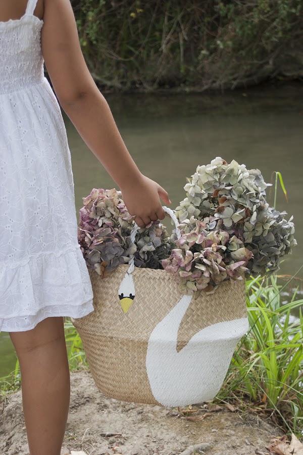 En la red podéis encontrar ejemplos de cestas pintadas con chalk paint ¡Muchos y muy bonitos! Sobretodo se suele pintar una parte de la cesta de un color, se hacen dibujos con plantillas de stencil y se le añaden pompones, lazos y borlas. ¡Ideales!Pero nosotrxs queríamos hacer algo más gráfico, distinto... Partiendo del dormitorio de la exploradora que os enseñamos aquí, se nos ocurrió pintarla con forma de flamenco, pero como no teníamos pintura rosa fucsia, decidimos pintar nuestra cesta con forma de cisne, usando pintura chalk paint blanca, que nunca falta en casa ;) ¡Empezamos!