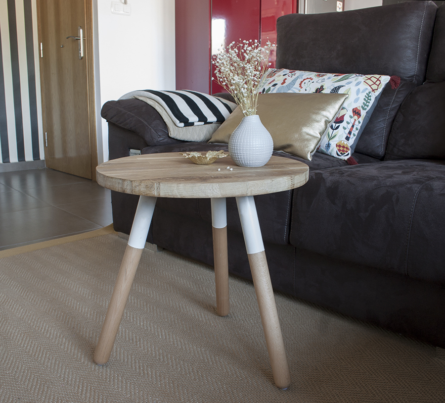 Hoy empezamos con un pequeño DIY con nuestra mesa auxiliar protagonista. Una mesa que os enseñamos aquí recién llegada a casa, y que a base de sentarnos encima, tirarla, darla golpes... había acabado sin una de las patas.