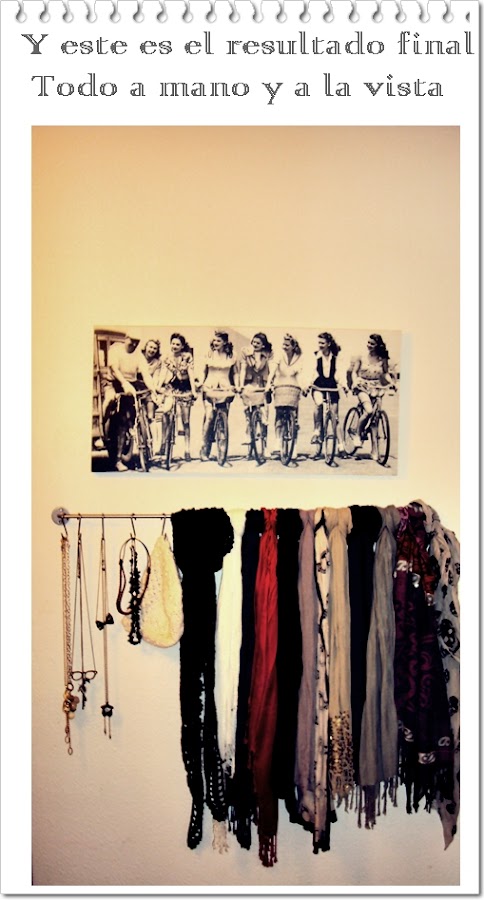 Mi siguiente paso era traerme el orden a mis pañuelos, bufandas y collares, que no solo estaban en un cajón es que ademas ocupaban parte de mi barra de armario y este ha sido el resultado.