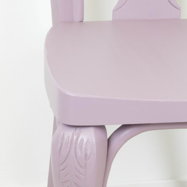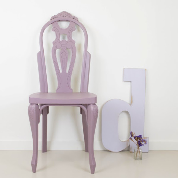 5. Después, procedimos a pintarla. La pintura escogida fue un violeta al agua de la marca La Pajarita, con efecto de acabado a la tiza. Con la ayuda de un pincel muy suave, dimos dos capas para cubrir perfectamente la superficie. Entre capa y capa, le hicimos un rascado suave para evitar imperfecciones en la superficie.