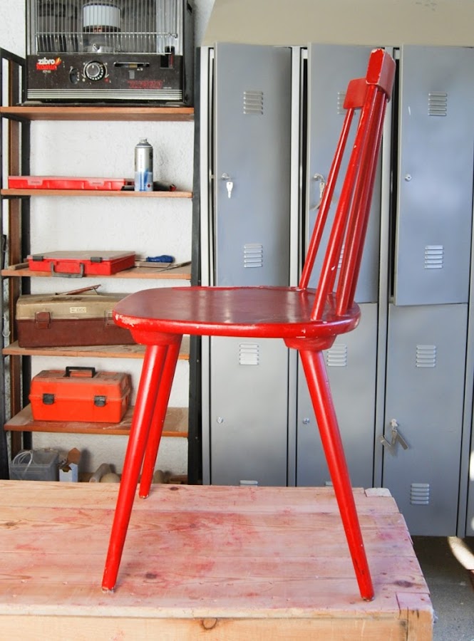 Así eran las sillas de la madre de Nati... Un poco desencoladas, con la pintura desconchada, pero muy bien conservadas. El proceso de decaparlas fue muy duro, por las capas y capas de rojo que tenían...