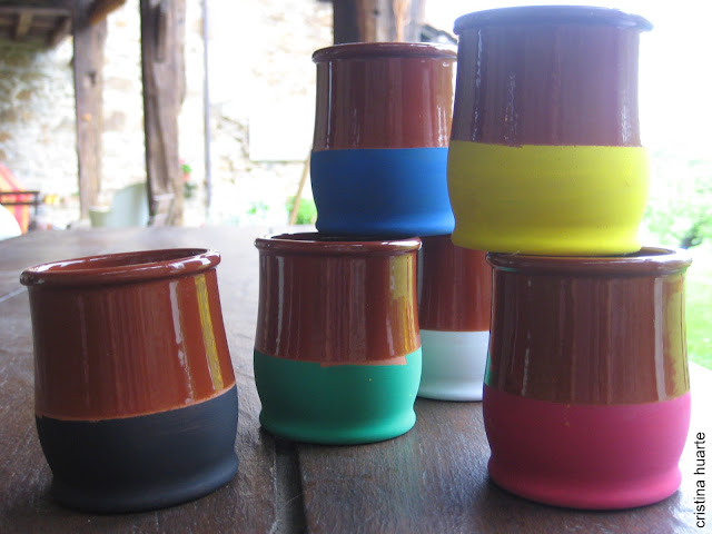 Seguimos con las manualidades que he hecho con mi hija durante los días de lluvia. Como teníamos un montón de tarros de barro, los hemos pintado en diferentes colores para darles uso en la cocina, todavía no sabemos muy bien su destino, pero seguro que lo encontramos. De igual manera el tema de nuestra publicación va orientada hacia la decoración con estos tarros de barro que seguro quedarán divinos.