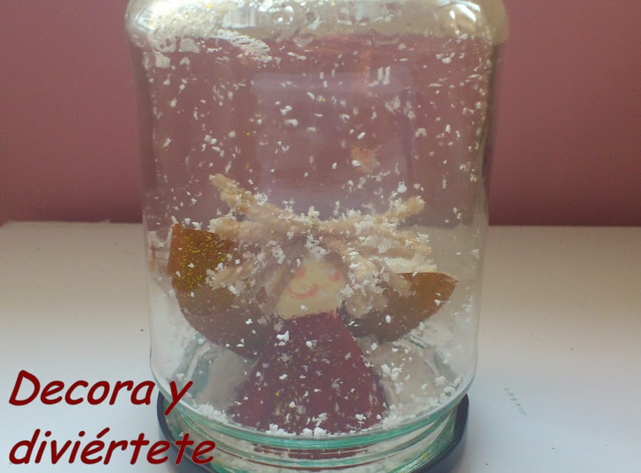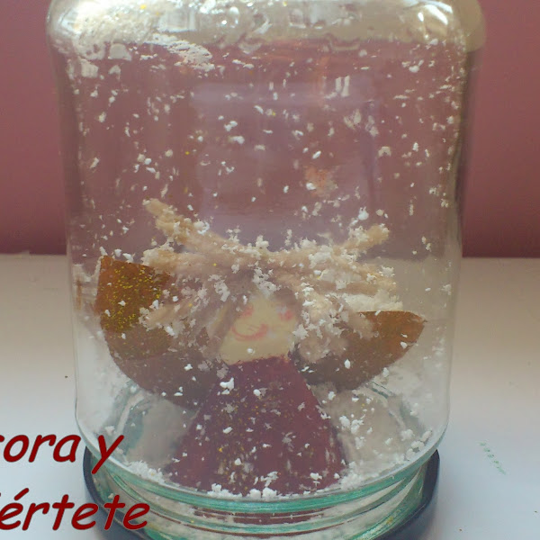 Es un bote de conserva convertido en bola de nieve , es fácil de hacer y además es una de las cosas que a los niños y no tan niños, siempre les llama la atención .