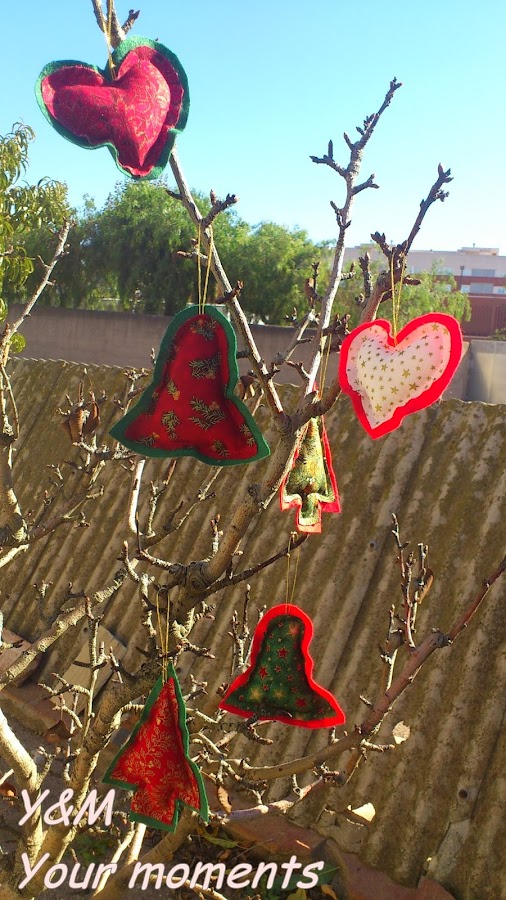 Estos detalles para colgarlos del árbol de Navidad , son muy sencillos pero decoran muchísimo , también los puedes poner en una bandeja todos juntos , encima de la mesa . Los he visto en Y&M Your moments