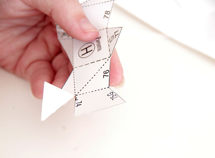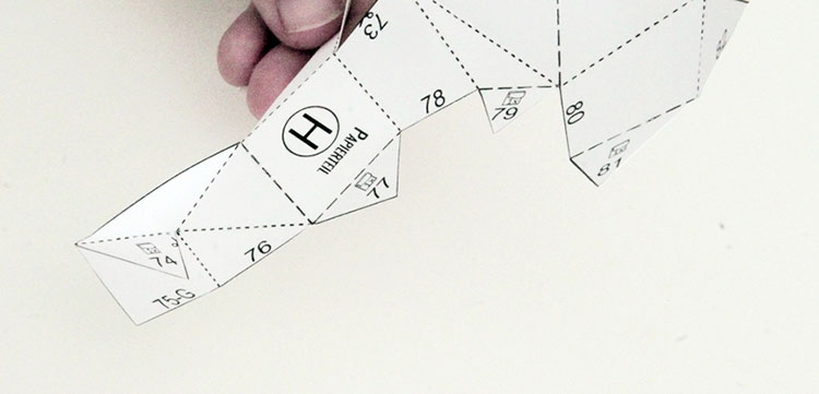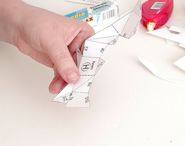 Y cuando las tengamos todas dobladas toca empezar a pegar. Esta parte parece un poco difícil pero no lo es. Tenéis que juntar pestaña con dibujo es decir si la pestaña es la 74, tenéis que buscar el dibujo 74. Os pongo una foto.