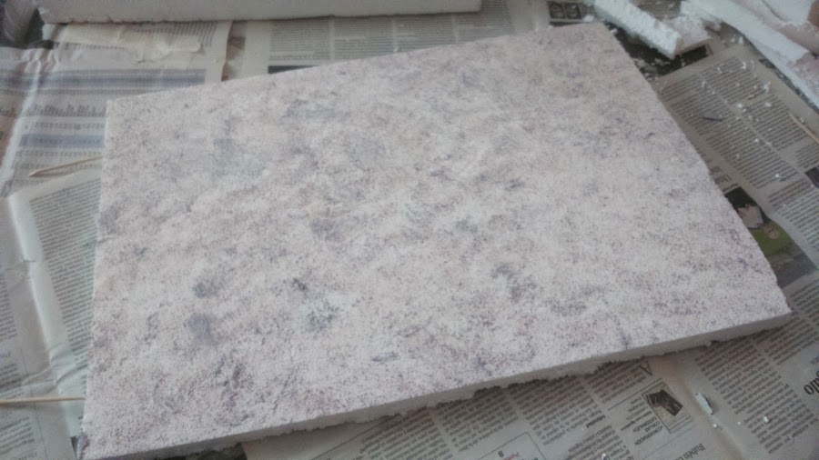 Lo primero será recortar tres piezas de porexpán del tamaño del que quedamos la lápida. En la última foto veis como queda montada, así os haréis una idea de las medidas que necesitáis. En mi caso, yo apenas tuve que recortar nada, tenía esos tres trocines que me vinieron de perlas!