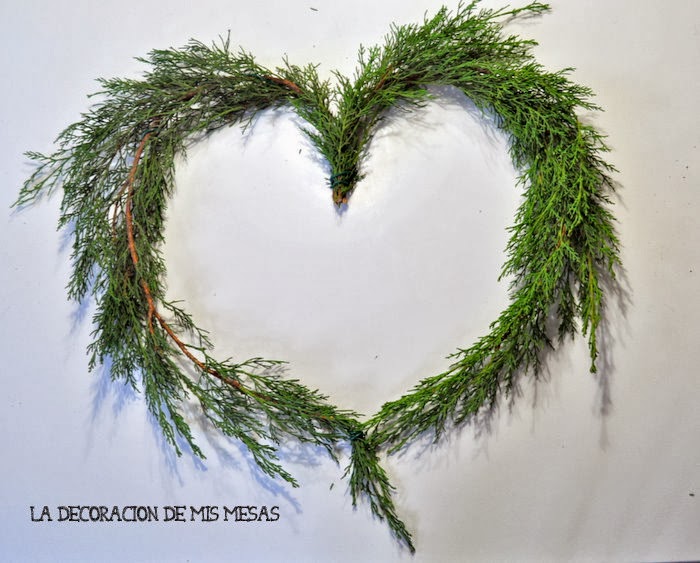 Es importante que las ramas no estén muy secas y se puedan combar un poco, ya que si no, al darle la forma de corazón se romperan.