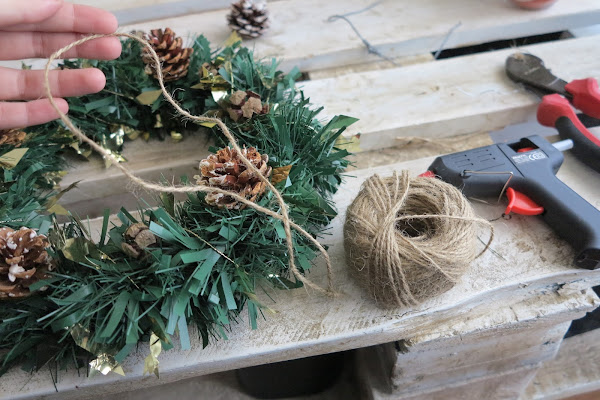 Finalmente solo nos queda pasarle un trocito de cuerda para poder colgar nuestra corona donde queramos.