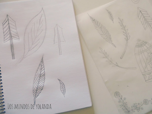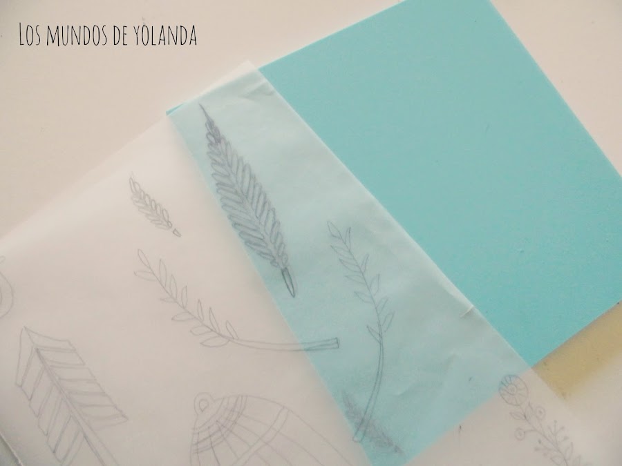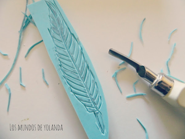 Comencé dibujando unas plumas de diferentes tamaños, una pequeña y otra grande para carvar el sello. Lo calqué como hice en el D.I.Y.Craft y entre los sellos que hice aquél día seleccioné uno para emplearlo en este proyecto.