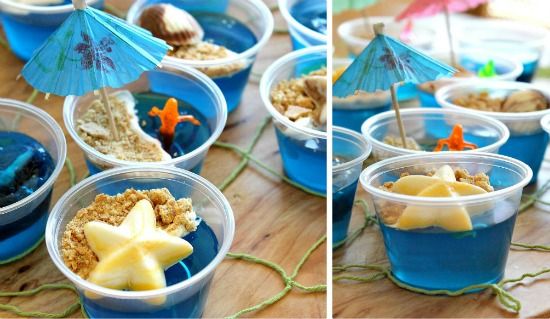 Cócteles de blue tropic sin alcohol hechos gelatina.