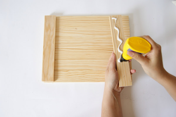 Pon puntos de cola blanca rápida en los puntos de unión entre los listones de la base y luego haz lo mismo con los transversales.