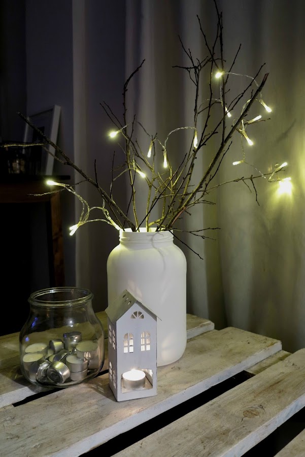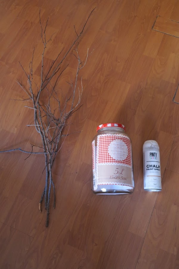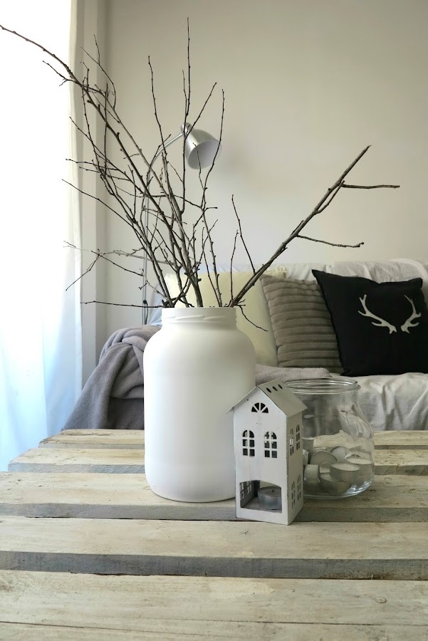 Lo único que tendremos que hacer es pintar con un spray el jarrón. En este caso he utilizado chalk paint porque deja ese efecto empolvado que tanto me gusta y de color blanco para que de mucha luz y contraste con las ramas secas. El jarrón he elegido un bote de conservas xxl, que compre en el chino por dos euros, porque me gusta mucho el efecto del chalk paint con las hendiduras de la rosca. Además comprando un bote de estos nos sale muchísimo más económico que un jarrón y tiene una forma más especial que junto a las ramas lo hacen precioso.