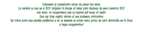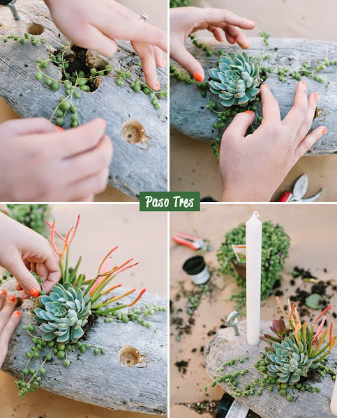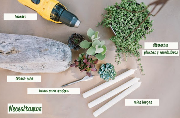 Este DIY hace meses que lo tenemos guardado en borradores esperando la llegada del buen tiempo. Fue amor total nada más verlo! Delicado, bonito a rabiar, por pocos euros y muy fácil de hacer. Todos los materiales los tenemos a mano (bueno, como gallegas quizá nos parece que todo el mundo tiene un trozo de madera a mano! jaja), y el gasto es mínimo. Para bodas, para una cena especial en la terraza o el jardín, para sorprender a tu pareja con un plan de velitas a lo romántico... En fin. Bonito-bonito, no os parece?