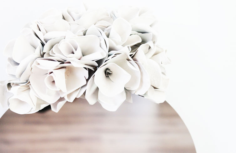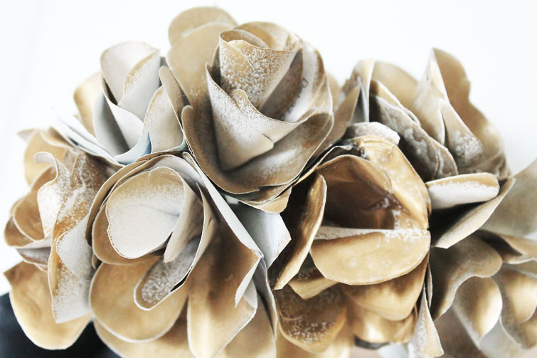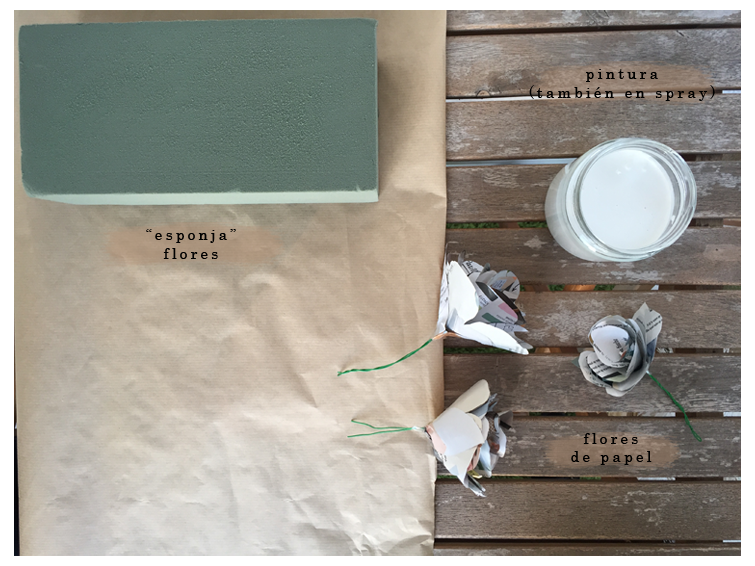 Rociamos las flores con spray blanco mate. Varias capas, respetando los tiempos de secado