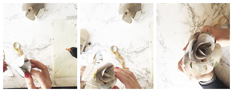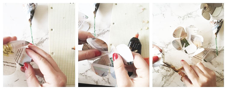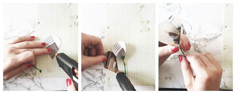 introducimos las capas de pétalos por el tallo y sellamos con una gota de silicona.