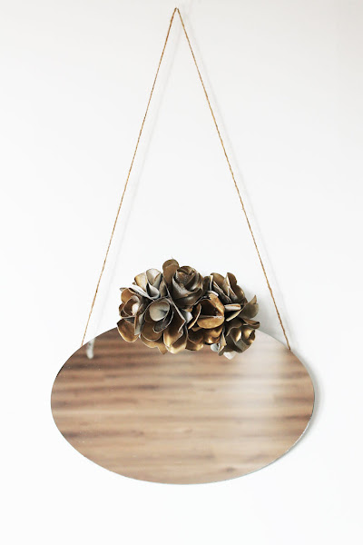 Hace tiempo que quería hacer algo con flores de papel, pero con un rollo un poco diferente. Las quería con "textura" y grosor. Así que, incorporar una composición de flores hechas con el catálogo de Opitec a un espejo, nos pareció muy buena idea. Al final, salieron tantas flores, que hicimos dos. Uno acabado en blanco y el otro en oro (la diferencia tan solo en que a las segundas les dimos spray, en vez de introducirlas en la chalky).