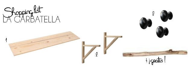 Tan fácil como poner un estante en la pared y en las escuadras del mismo colocar una rama de árbol en la que previamente hemos puesto unos tiradores que serán los percheros, et voilá! Un perchero de pared económico y con mucho estilo!