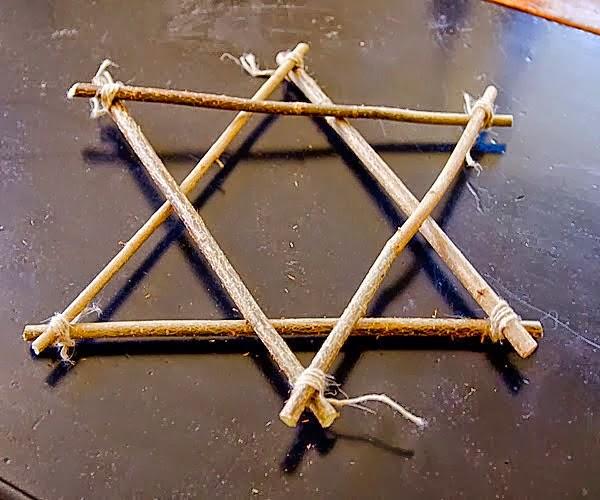 Hacerla es tan sencilla como coger unas ramas naturales y atarle cuerdas formando 2 triángulos, después solo hay que unir ambos triángulos para formar la forma final y volver a atarlos entre sí, también podéis usar una pistola de silicona para unir las partes y el resultado será el mismo, incluso más ligero a la vista.