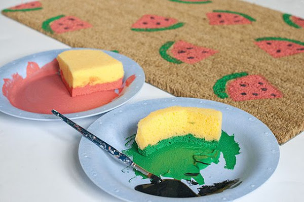 Hola de nuevo amigos... Si, lo sé... Últimamente, siempre que me paso por aquí os enseño algún DIY relacionado con frutas: Primero esta fiesta veraniega con la sandía como protagonista, luego estas piñatas handmade, y hoy este felpudo tuneado con unos dibujos de sandía. ¡Cómo separar las frotas del verano!