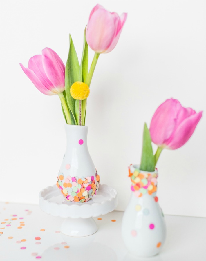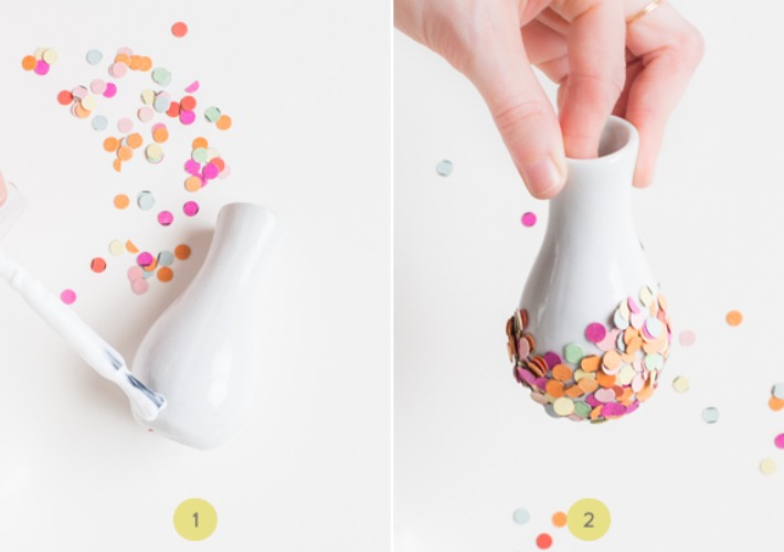 Hoy os traigo un diy efímero para decorar unos floreros con confeti. Si bien es cierto que no nos servirá para una decoración para todo el año es una alternativa handmade para una fiesta o para un centro de mesa de alguna celebración.