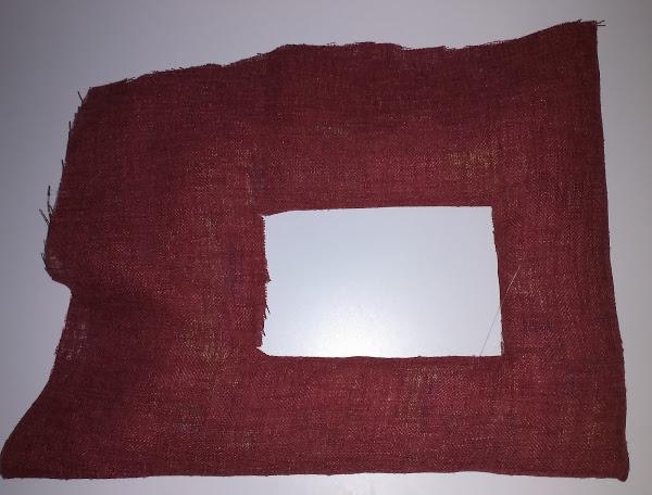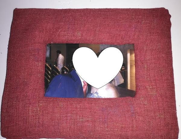 Recortar la tela algo más grande que el marco de fotos a forrar, para así tener suficiente material y que después al pegar no andemos justos.