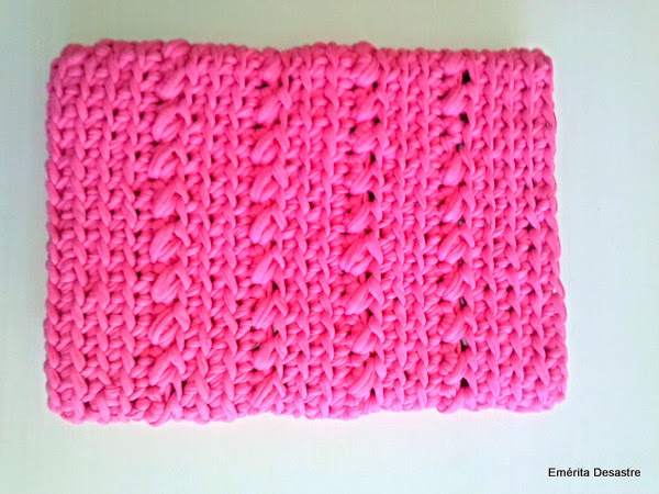 Desde que hace ya más de un año me hice "trapillera" (uff!! suena raro esto, ¿no?), ya he hecho un montón de cosas, una alfombra, cestos, bolsos, fundas para móviles, manteles individuales, cojines, portavelas... y es que sirve para todo; la verdad es que como siga así me veo como las abuelas que todo lo cubrían con ganchillo, y bueno ya me dedico a regalar cosas, porque si no pensaréis que mi casa da miedito. Y es que me encanta hacerlo y me relaja; es más ya he "enganchado" a dos amigas más y bueno seguro que a este paso hacemos una "Liga de enganchadas trapilleras", a la que por supuesto os invito.