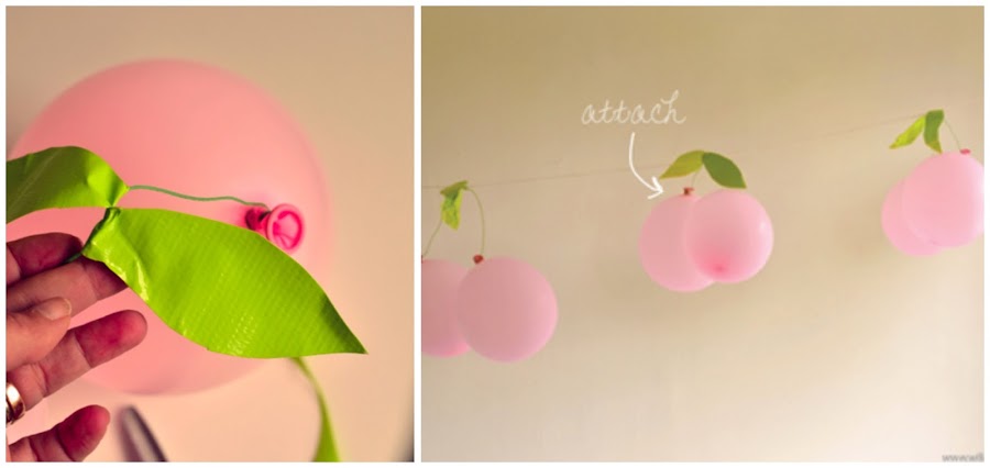 Por esto, creo que este DIY de guirnalda con forma de cerezas, os puede servir para hacer una decoración de fiesta con globos mona y divertida.