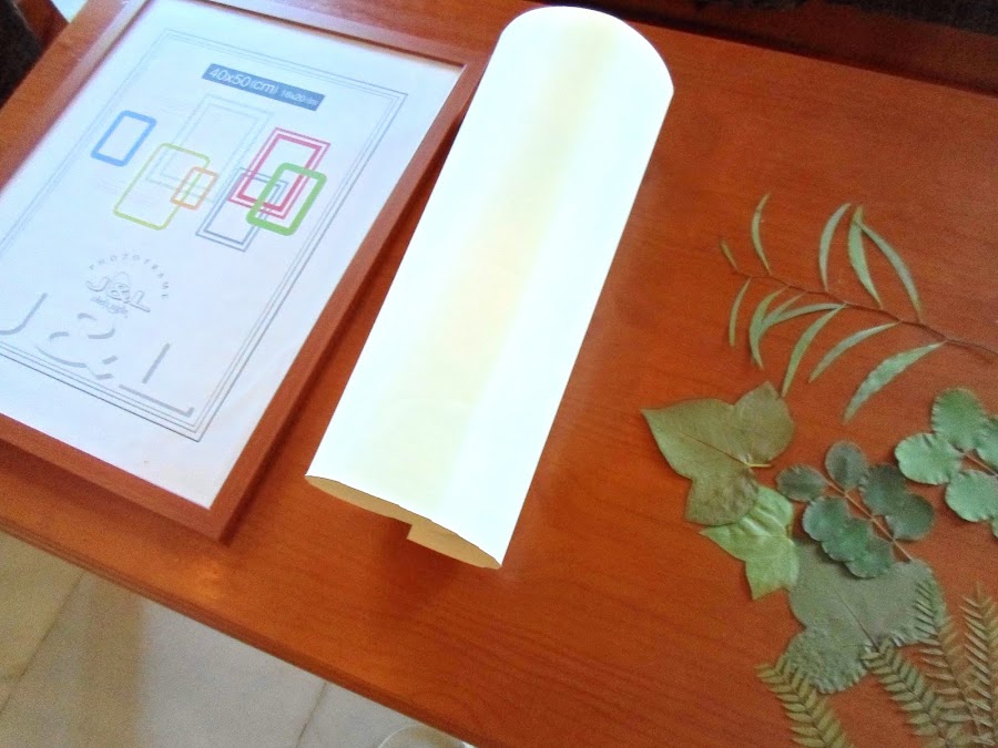 Una cartulina, un marco , pegamento y hojas secas de plantas.