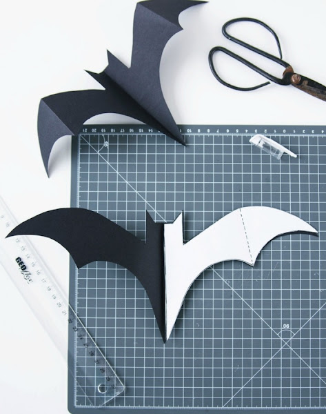 Repetimos la operación con otros murciélagos en cartulina negra y otros en cartulina dorada.