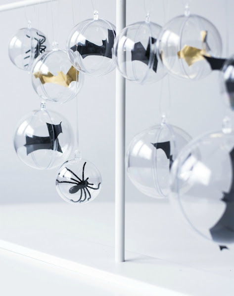 También introducimos arañas de plástico en el interior de las bolas transparentes.