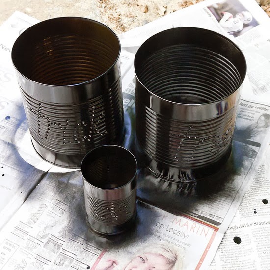 6. Limpia las latas secalas y déjalas al aire libre o en un lugar bien ventilado, luego en tu área de trabajo pondremos periódico, para dejarlo bien protegido de posibles salpicaduras y con el spray negro proseguiremos a pintar nuestro bote tanto por dentro como por fuera.