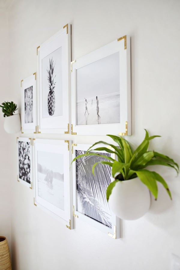 El tutorial de hoy es suuuper sencillo, pero queda la mar de chulo y resultón. Con un marco blanco sencillito (Con los de Ikea tienes más que suficiente), unas esquineras doradas y unos mini tornillos dorados tendrás unos marcos distintos y muy originales.