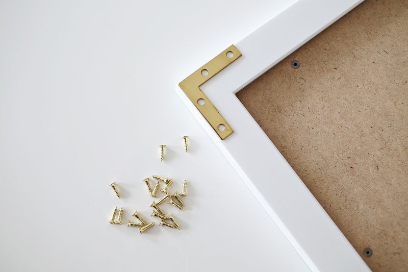 Sólo tienes que poner una esquinera en cada esquina del marco y atornillar los tornillos pequeños. No hace falta que hagas agujero con el taladro si no quieres, podrás atornillarlos sin problemas a mano. Si no te terminas de aclarar con las imágenes y lo que te explico, puedes ver el tutorial aquí.