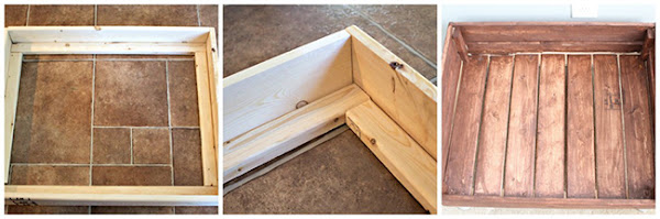Los materiales son tan sencillos como listones de madera unidos, bien con cola extra fuerte especial para madera, bien con clavos pequeños, unas patas y listo, también podéis hacerla con palets dependiendo de lo grande que sea vuestro peludo, en mi caso tienen un palet entero para ellos en la oficina porque son dos.