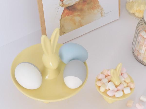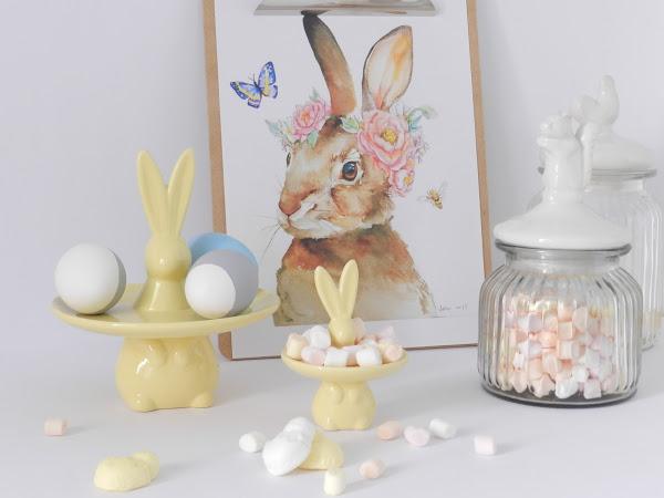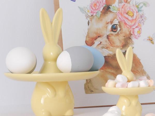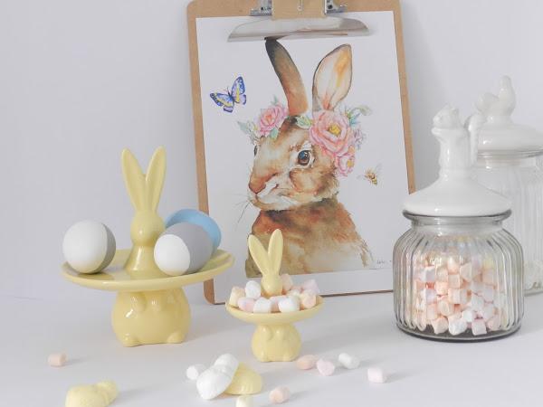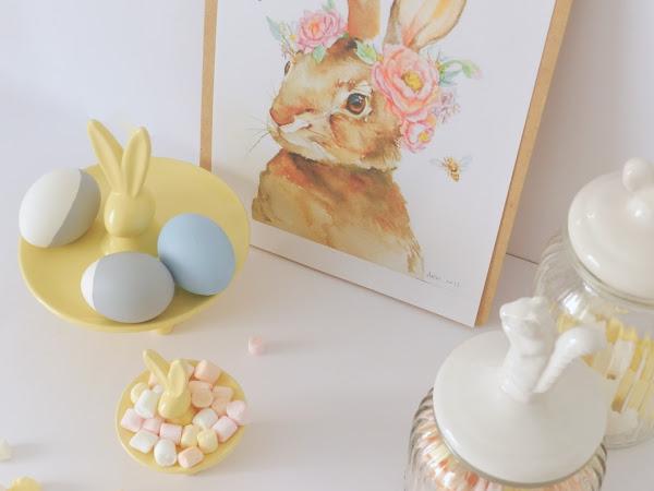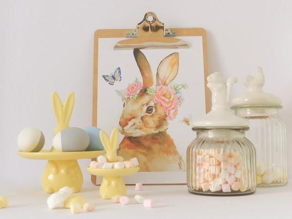 Cómo os tengo muy acostumbradas a pintarlo todo de amarillo, y en este caso, los conejos ya eran amarillos decidí pintar los huevos en azul y gris. El azul lo pinté entero, tenia otro medio azul pero sufrió un accidente (ups!) y los dos grises los pinté a medias. Para añadirle algo más de detalle a la decoración de pascua, imprimí ésta preciosa lámina, sacada de Pintarest y el resultado me encanta!