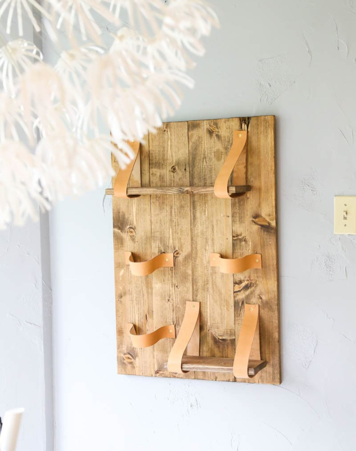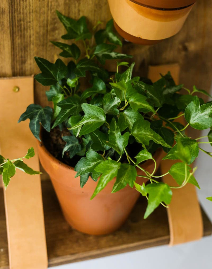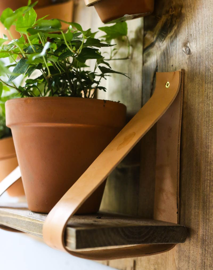 La idea del blog Love and renovations es crear una composición de plantas. Tres macetas que sujetaremos gracias a unas abrazaderas de cuero y otras tres macetas que colocaremos encima de dos baldas de diferentes tamaños.