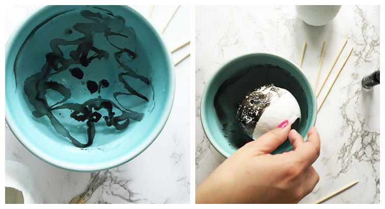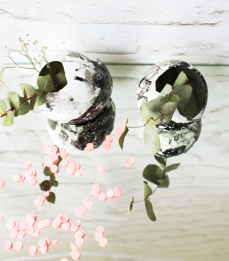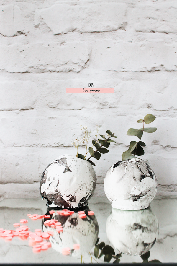 En este tutorial, combino dos cosas que me encantan y que tenía mucas ganas de probar. Por un lado, los jarrones de efecto globo (redondos, muy muy finos, y con aspecto delicado) y por otro, como os decía, el efecto marmolado en blanco y negro. De hecho, tengo un par de tutoriales más preparados con tema mármol, pero son en tonos flúor (muy cañeros y de cara al verano) que estoy segura de que os van a gustar y que probaréis a hacer porque quedan genial...