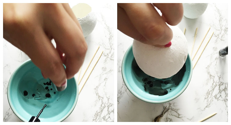 EN UN RECIPIENTE SEGÚN EL TAMAÑO DE NUESTRO JARRÓN-GLOBO, ECHAMOS UNAS GOTAS DE ESMALTE DE UÑAS NEGRO.