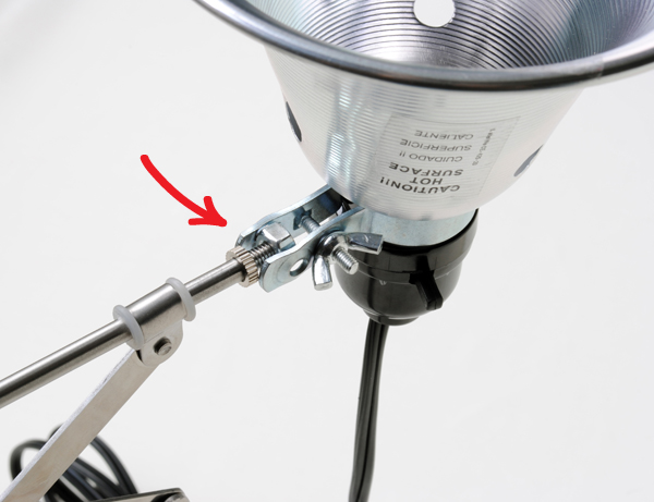 Primero une la parte del espejo a la lámpara desmontando el tornillo de mariposa, en el espejo le instala una tuerca y atornilla la mariposa a la tuerca. Un proceso tan sencillo que parece hasta tonto. A continuación prepara todas las piezas para pintar, aplicando spray color blanco por la cara exterior y color azul termal para la cara interior de la lámpara.