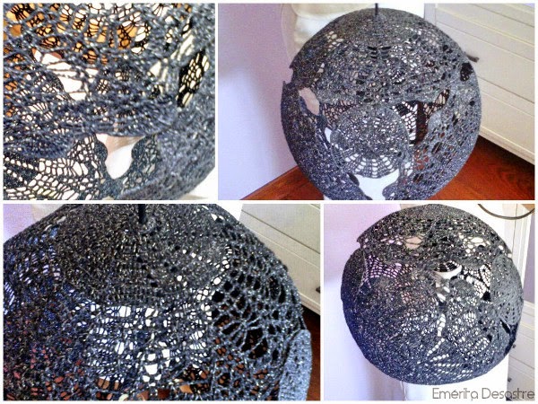 Desde que mi amiga Ana vio la archiconocida lámpara de crochet que hay en la red y que yo también colgué en este artículo lamparas para colgar se enamoró de ella y quiso hacer una parecida, utilizando precisamente los doilies.