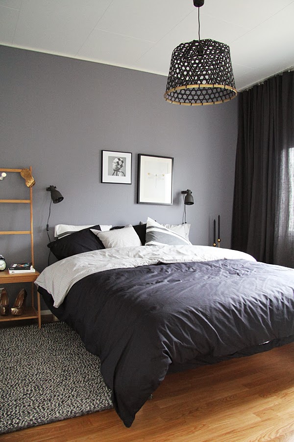 Cuando vi esta habitación tan chula, pensé que tenía bastantes cosas similares a mi habitación secundaria, los colores con los que estoy jugando son unisex una de las grandes ventajas del trío gris, blanco y negro. Tanto el cubre edredón, como las lámparas auxiliares o los marcos son exactos a los que yo había escogido, casi como si hubiera visto estas imágenes con anterioridad.