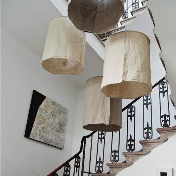 Un encargo de una amiga, una mudanza y cambio de casa grande a piso pequeño. Una máxima: gastar casi nada. El piso de comienzos de 1900 es una finca rehabilitada, los techos a tres metros del suelo y nos faltaban lámparas y cable visto. Así que sacando cajas después de la mudanza, encontré un faldón de una cortina de lino. La cortina había encontrado su nuevo sitio pero el faldón que cubría la ca ...