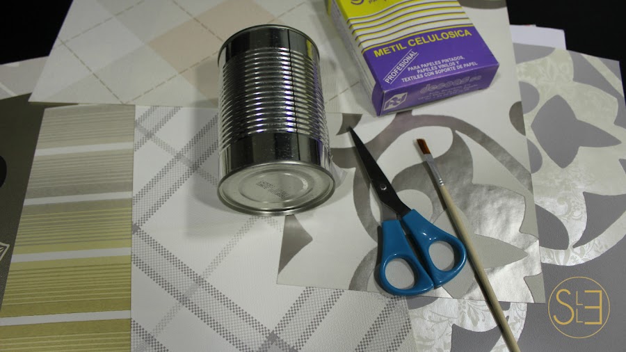 3- Encolar la lata y el papel, y empapelar la lata.