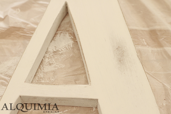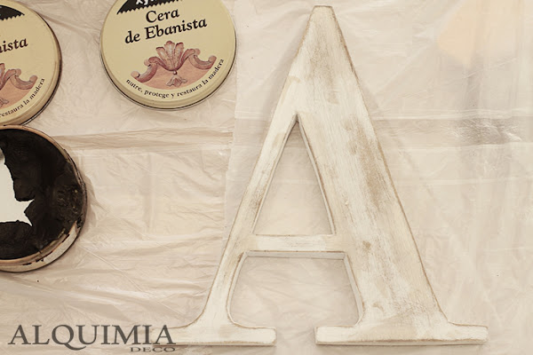 Por último, cuando ya tenía las "manchas" creadas, le he pasado otro trapito con cera transparente para protegerla y así es como ha quedado nuestra letra!