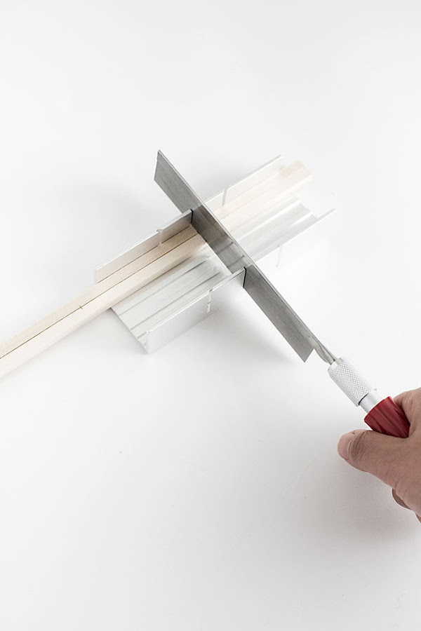 Para cortarlos nada mejor que una caja ingletadora, esta herramienta evitará accidentes y permitirá que los márgenes de los listones queden perfectos. El coste es muy barato y os puede valer para muchísimos trabajos manuales, ya que permite cortar cualquier tipo de material.