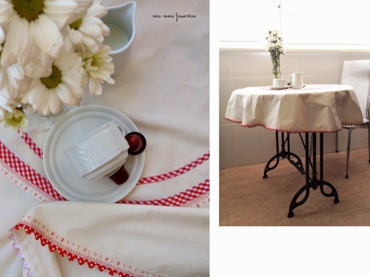 Una vez puesto en la mesa ni se notan los "remiendos".Si te gusta la costura aquí tienes unas ilustrácticas taller de costura "al hilo" de lo que te estoy contando.