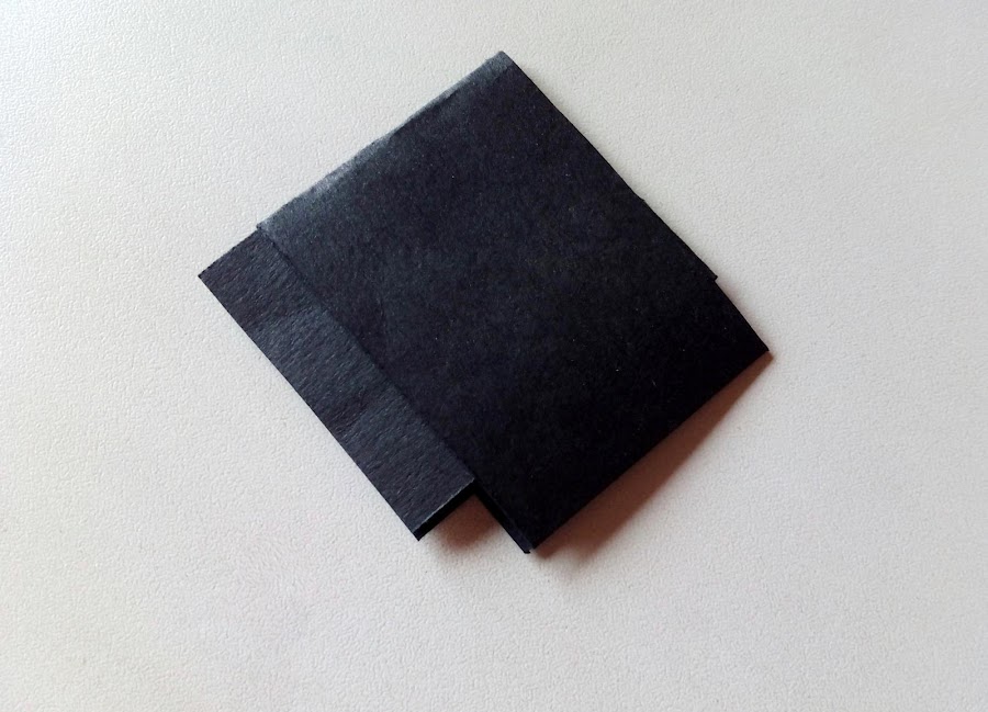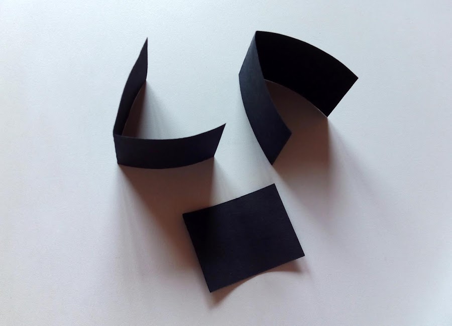2. Corta tres trozos de cartulina. Dos de ellos más largos y dóblalos por la mitad.
