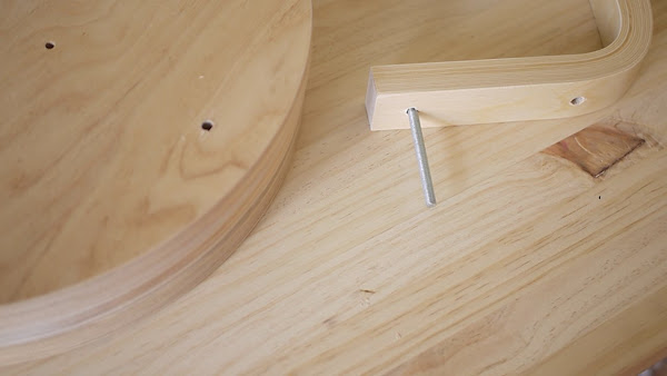 Y llegó la hora de montar! pasa el tornillo por el agujero interior de una de las patas y pásalo por los agujeros exteriores que hemos hecho en los asientos. De esta forma hacemos que la mesa sea estable cuando está abierta y si la tenemos cerrada podemos girar la pata hacia dentro para no tropezarnos.