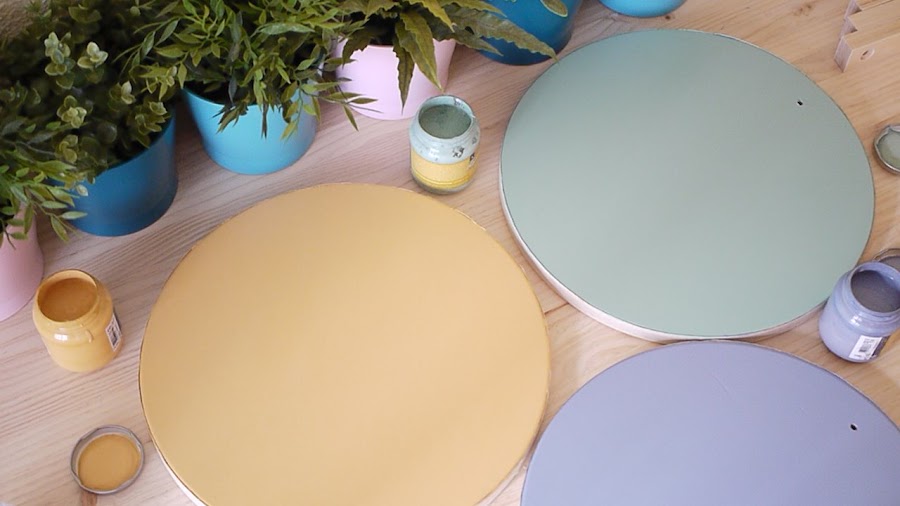 Aquí se aprecia bien, el amarillo está normal y el azul y el verde tienen uno de los agujeros hasta el otro lado. Una vez en este punto, es el momento de pintar. Yo he utilizado un color para cada asiento pero los podéis dejar naturales, hacer dibujos geométricos, utilizar stencil... aquí es a gusto de cada uno.