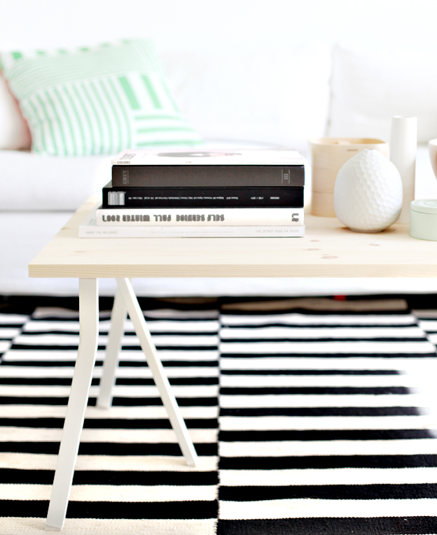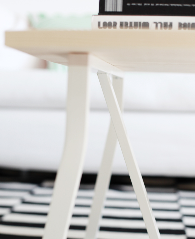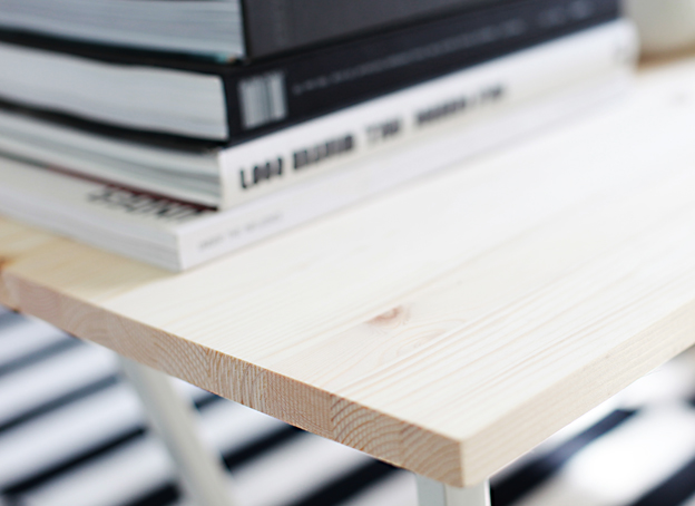 El procedimiento es muy sencillo ya que tan solo nos hace falta un tablón de madera (de venta en tiendas de bricolaje) y unos Caballetes VIKA Lerberg de Ikea, que cortaremos a la altura deseada.